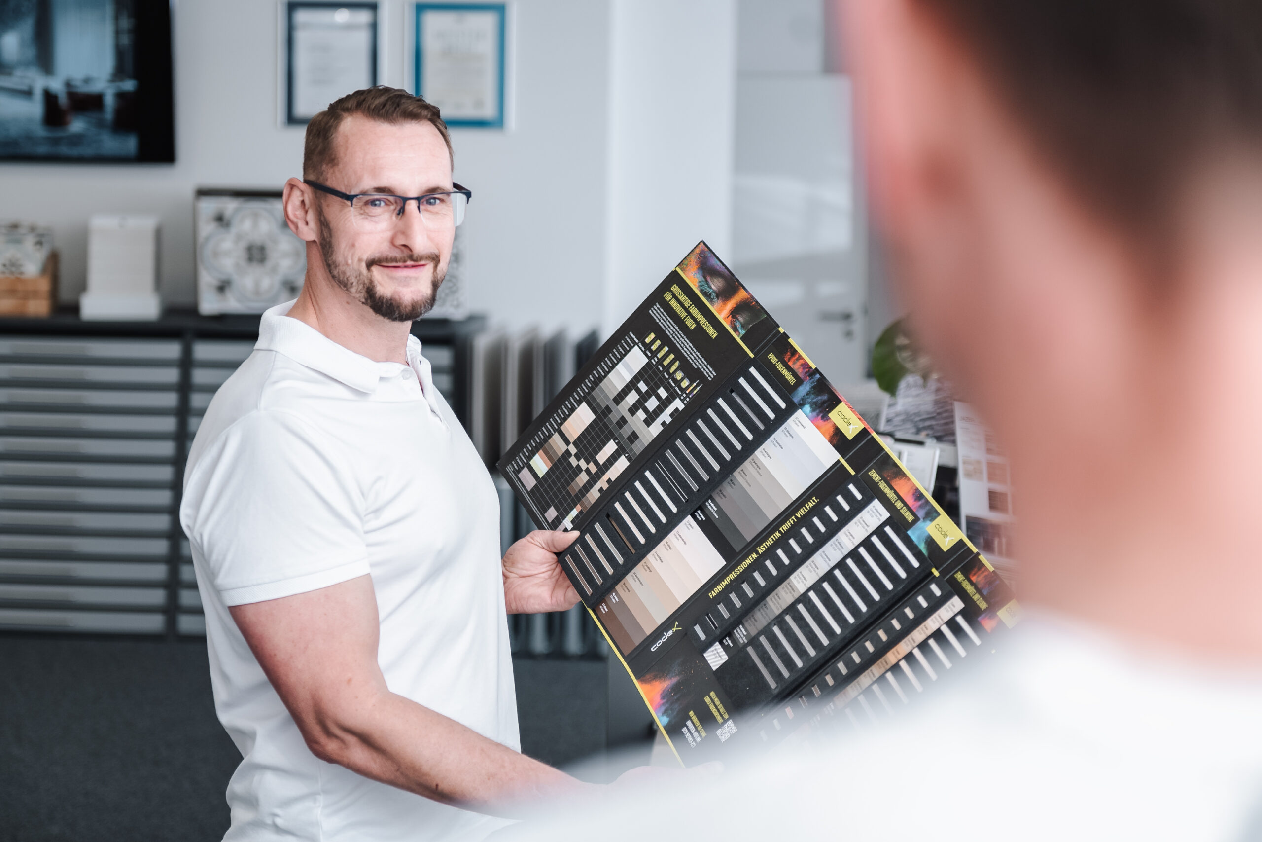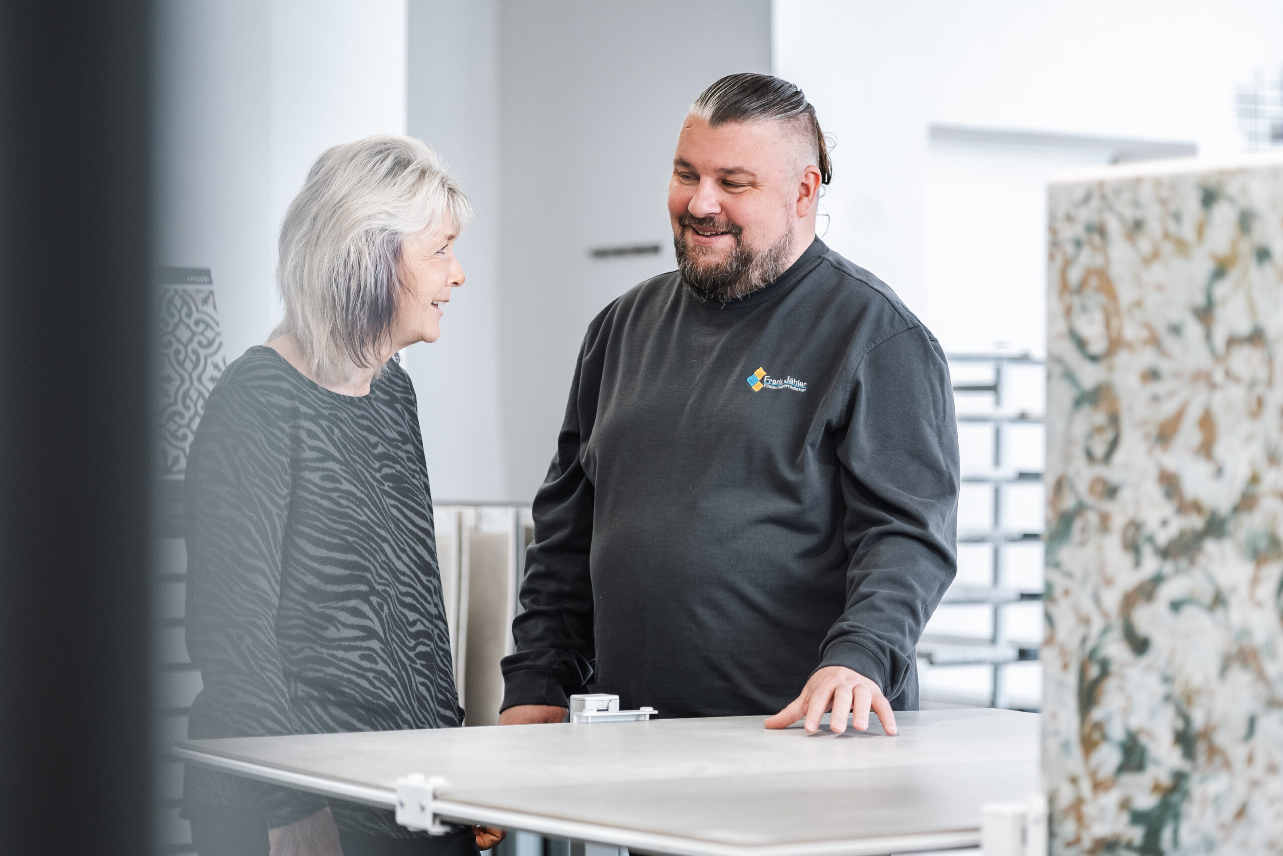 Wir nehmen uns gerne Zeit für Sie: In einem persönlichen Gespräch unterstützen wir Sie dabei, genau die Fliese zu finden, die zu Ihnen und Ihren Räumen passt.